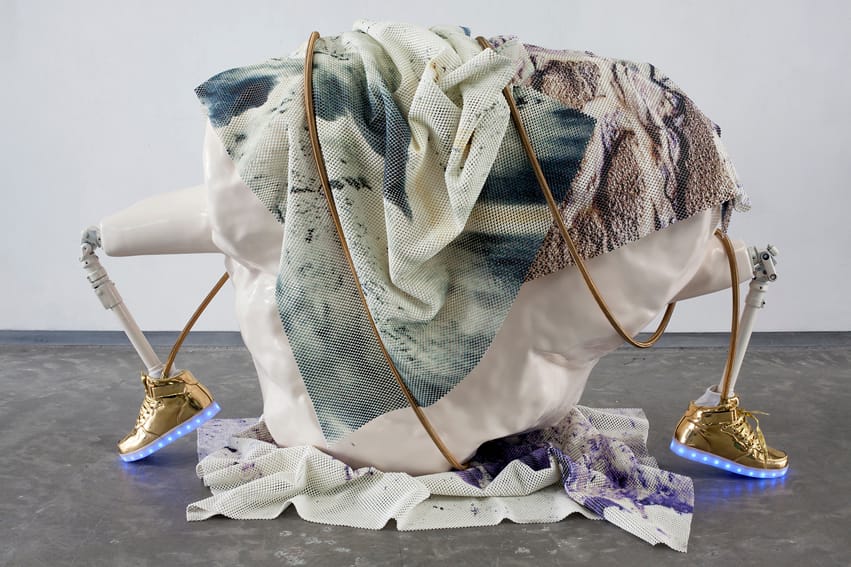Kruithof’s hybrid sculptures are a seductive representation of an uncomfortable reality in which man finds itself increasingly trapped in a state of chaos and decay. The exhibition title – ¡Aguas! – refers both to the element of water that largely makes up the world and the human body, and to a commonly used Latin American warning cry: ‘¡Aguas!’ also means ‘Watch out! Beware!’ The exhibition constitutes an alarming visualisation of how the incessant flow and consumption of digital images gradually alienates us from the physical reality that surrounds us.