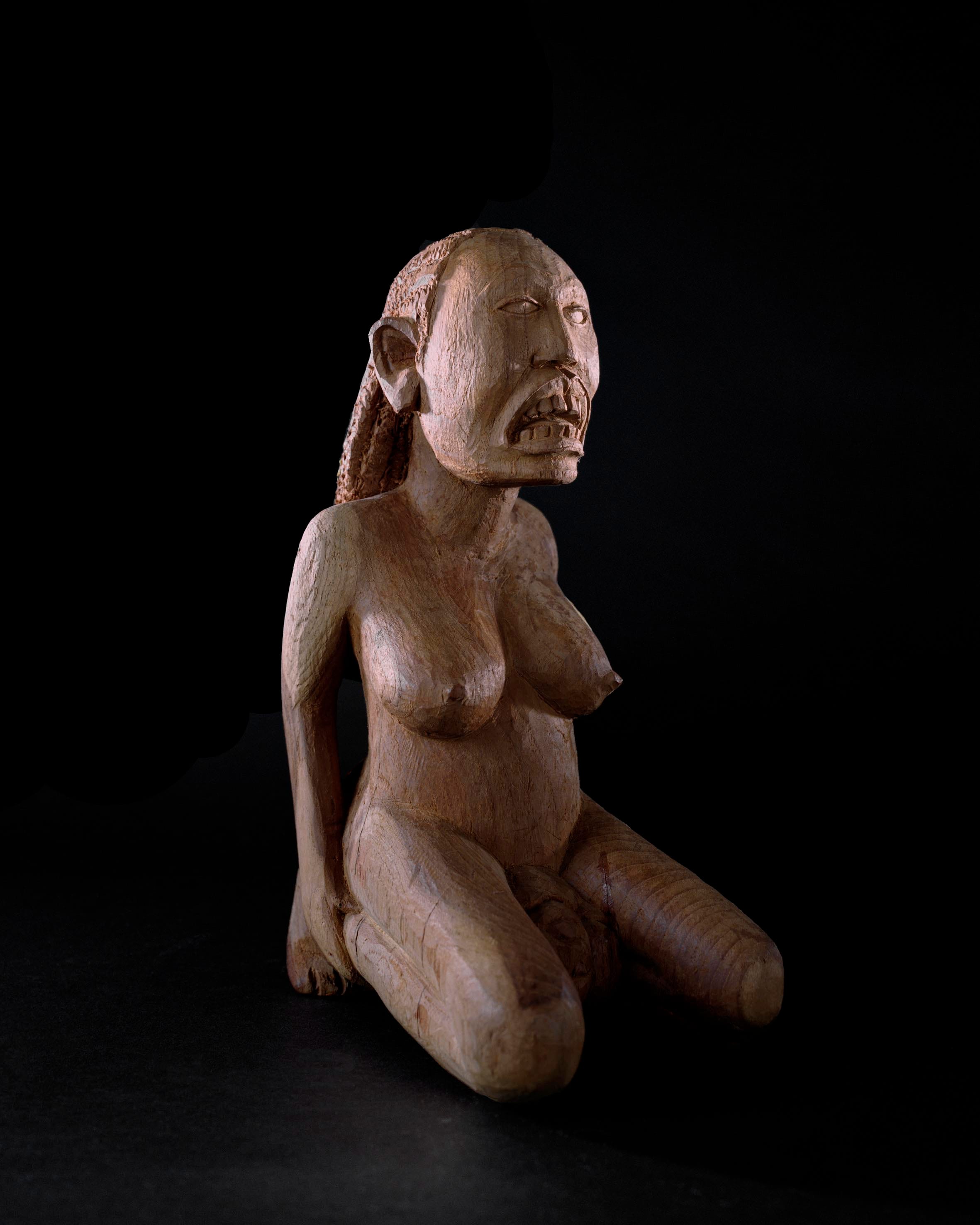 Paans was captivated by the confusion between replica and original, and how the museum assigned value to an object that is in no way related to any original effigy of Tlazolteotl. The artist continued this cultural mutation. He bought a plastic replica of the Golden Idol, photographed it, and sent the photograph to an artisan. Based on the photo – which shows only one side of the figurine and gives no indication of the object’s size – this artisan then created a replica of his own, which he sent back to Paans. Paans photographed this new version, sending the photograph to yet another maker, and so on; but each maker only saw the photographed version of the previous maker’s figurine. The artisans belonged to different countries, including Mexico, China, Uganda, Greece, Italy and the Netherlands. Through differences in interpretation, the statue gradually transforms from a screeching woman giving birth into a dignified woman who appears to be peacefully meditating in a half-clothed state, without any birthing or baby involved. A cultural evolution caused by the makers’ cultural background, ideology, commerce, personal taste or available technology.