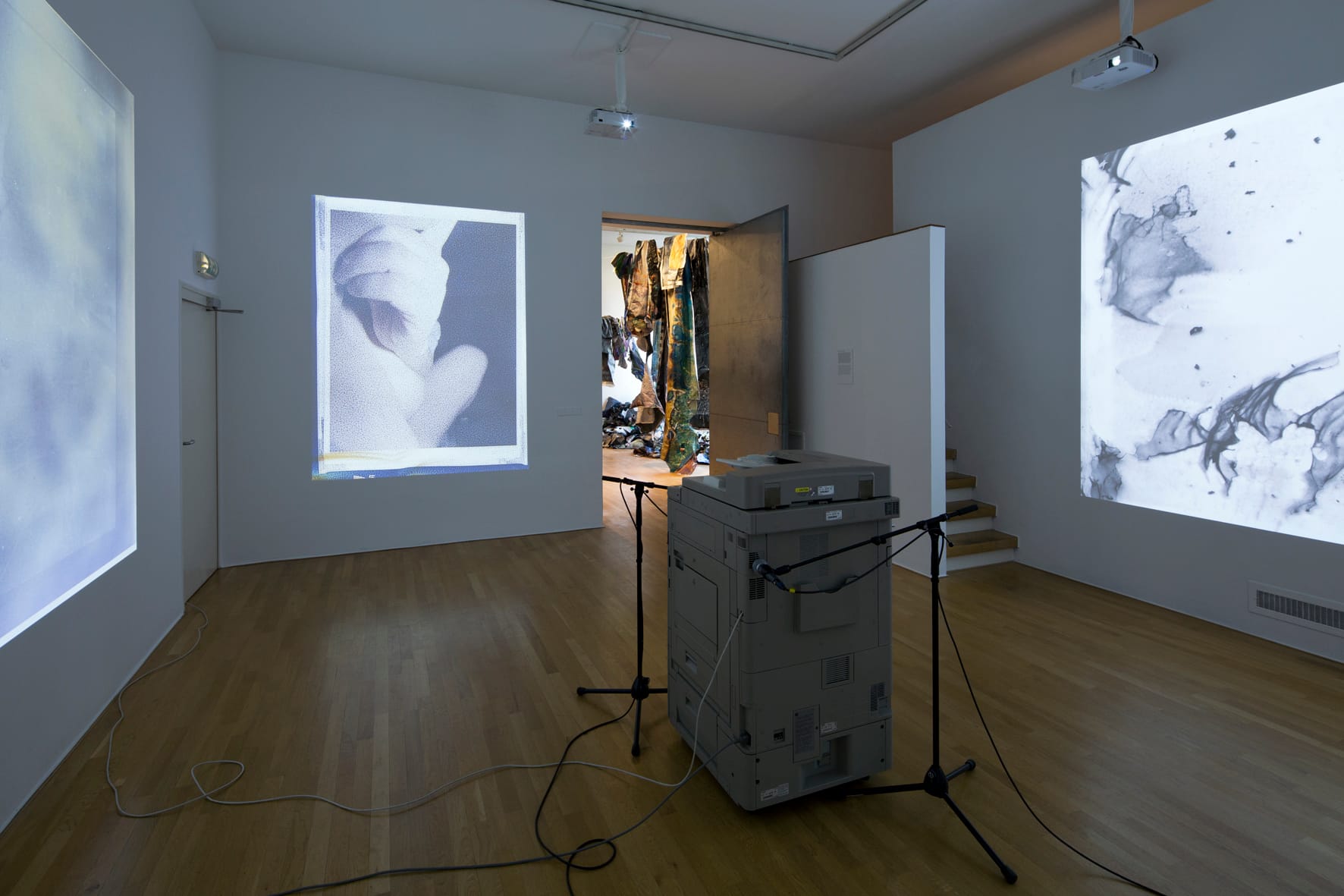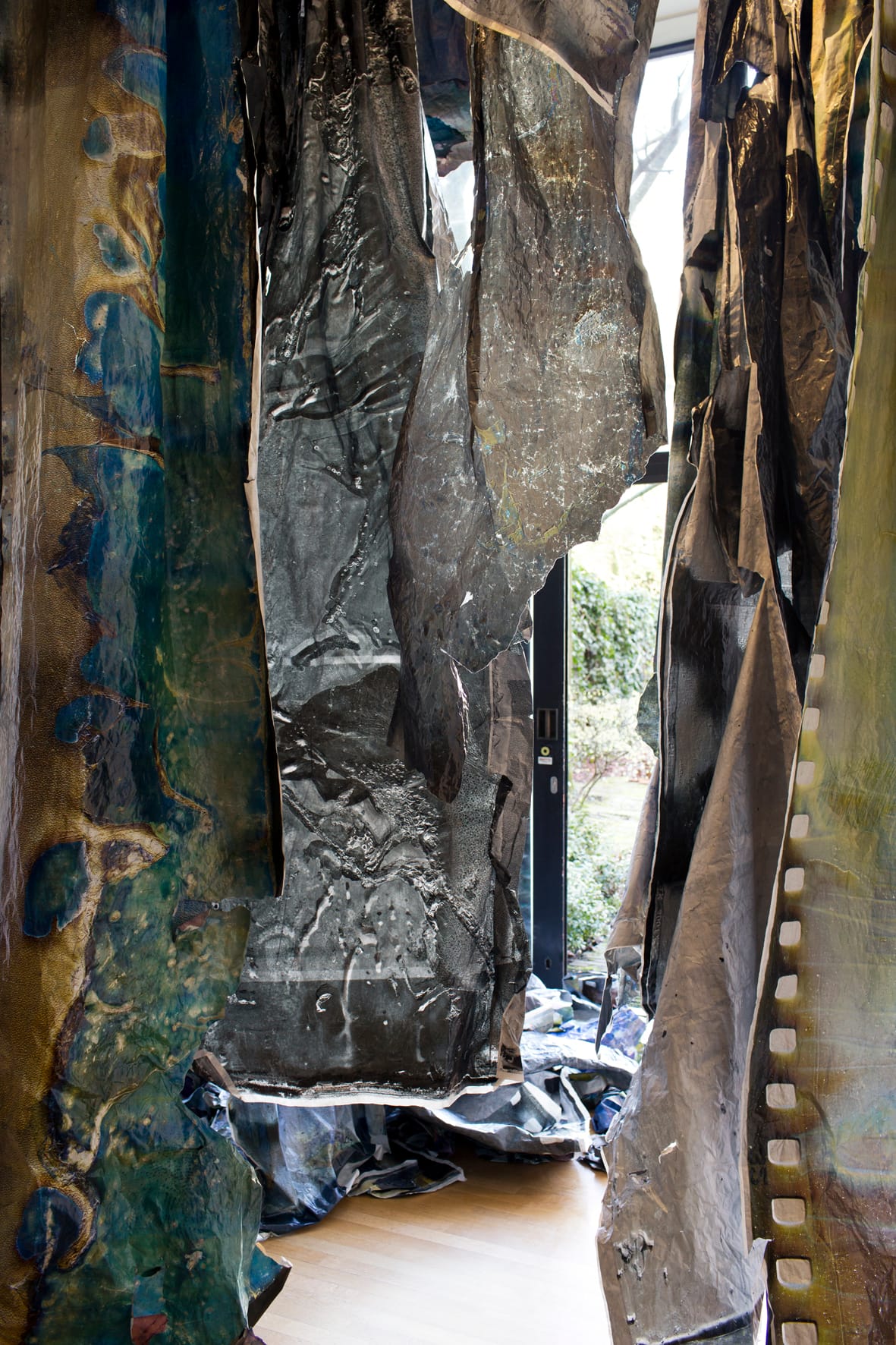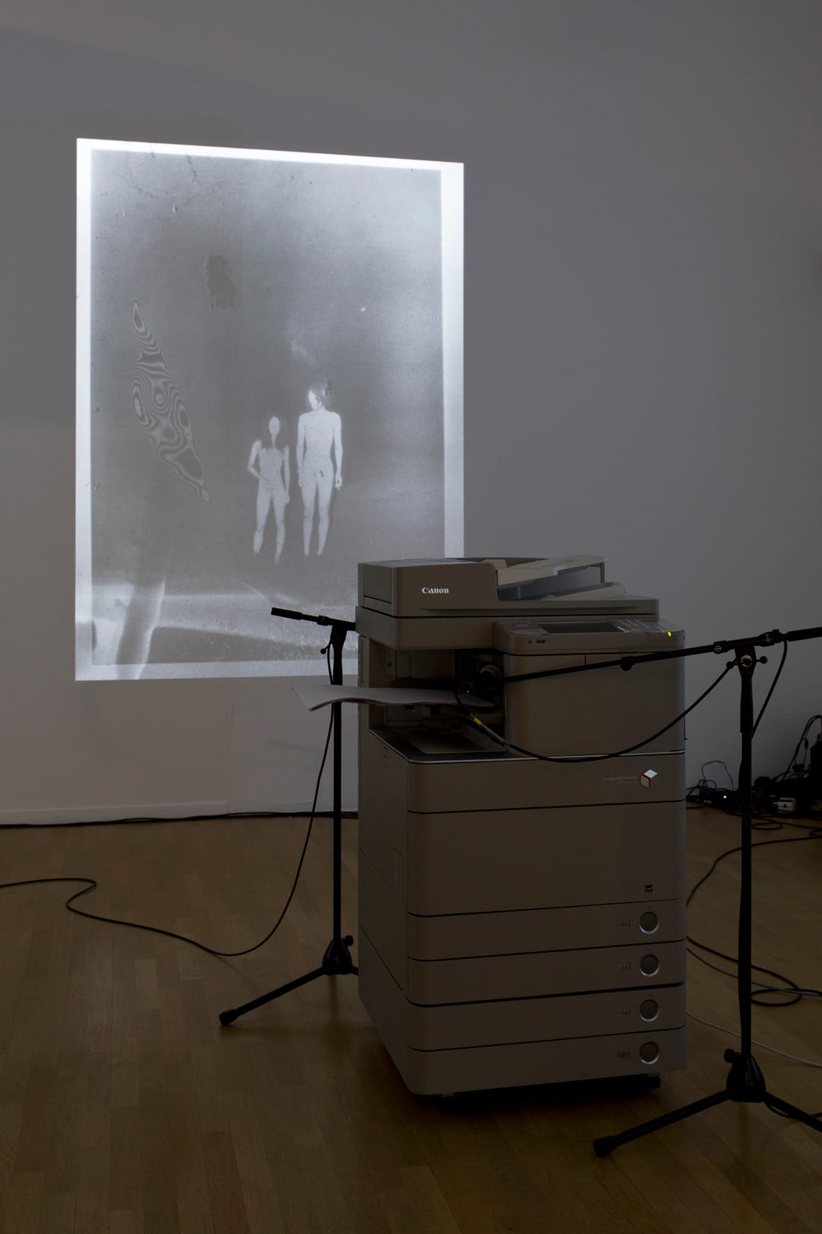 The exhibition of the Japanese photographer consists of room-filling installations that provide the viewer with new experiences of photography in each one of the three exhibition rooms. One of the installations entails an enlarged print of a film roll directly exposed without interference of the camera. This long trail is draped throughout the exhibition room and waxed on site. In another installation Yokota projects the outcome of darkroom experiments with unorthodox developing processes on the walls. A printer will slowly print these chemical distortions of the negative.