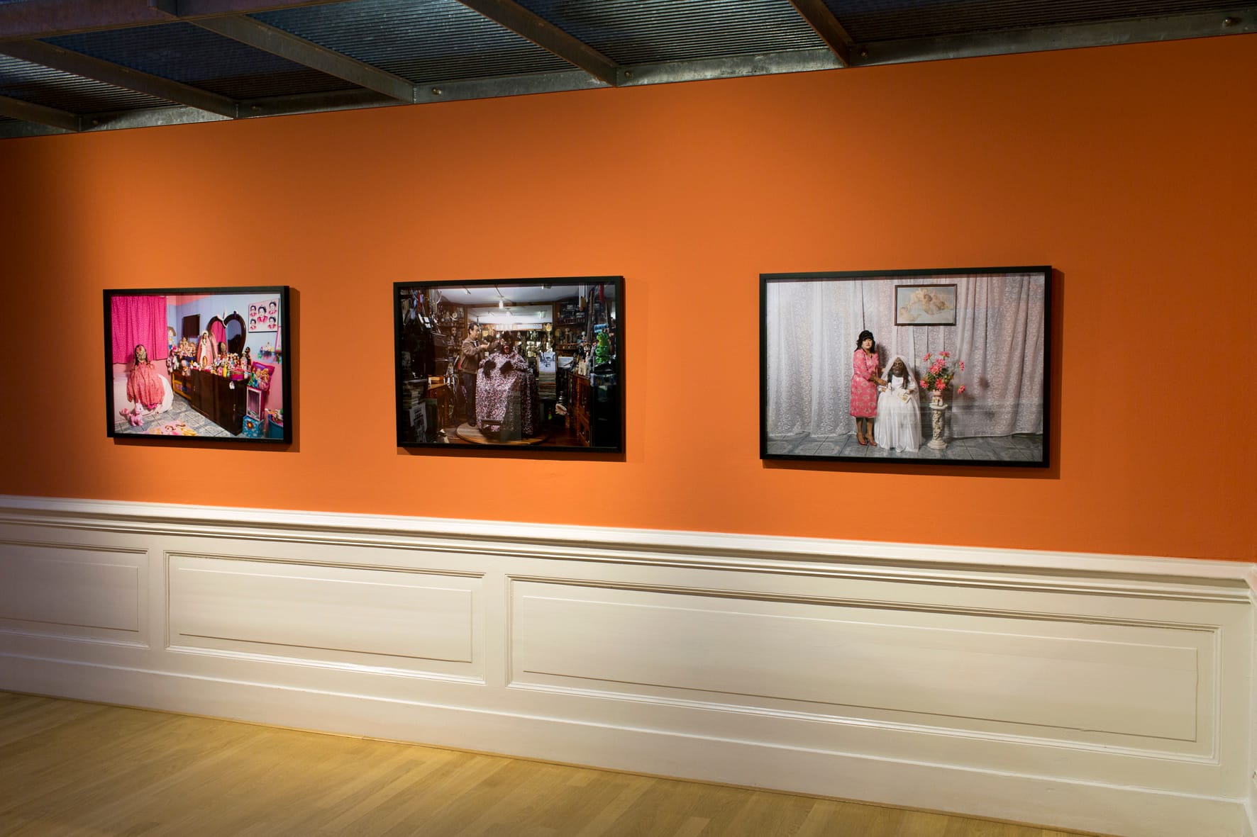 Every 22nd September, monstrous creatures in bulbous dresses descend upon the streets of Diego Moreno’s hometown, San Cristóbal de las Casas. These people, dressed as panzudos mercedarios, celebrate the Catholic feast of Our Lady of Mercy. The panzudos represent sin – the more sins the person has to expiate, the bigger and uglier their costume. Every year they remind Moreno of his late great aunt, Tía Cati, the black sheep of his family. Disfigured by a rare autoimmune condition and for a long time mistreated by her own sister, she was absent from family photo albums. After her death, Diego Moreno felt the need to rebuild her image. Over three years he staged scenes of panzudos in domestic spaces, portraying the home as a place plagued by ghosts to evoke the disturbing history of his family. Referencing the Mexican style of magical realism, Moreno fuses apocalyptic visions of the Catholic religion with pre-Hispanic traditions.