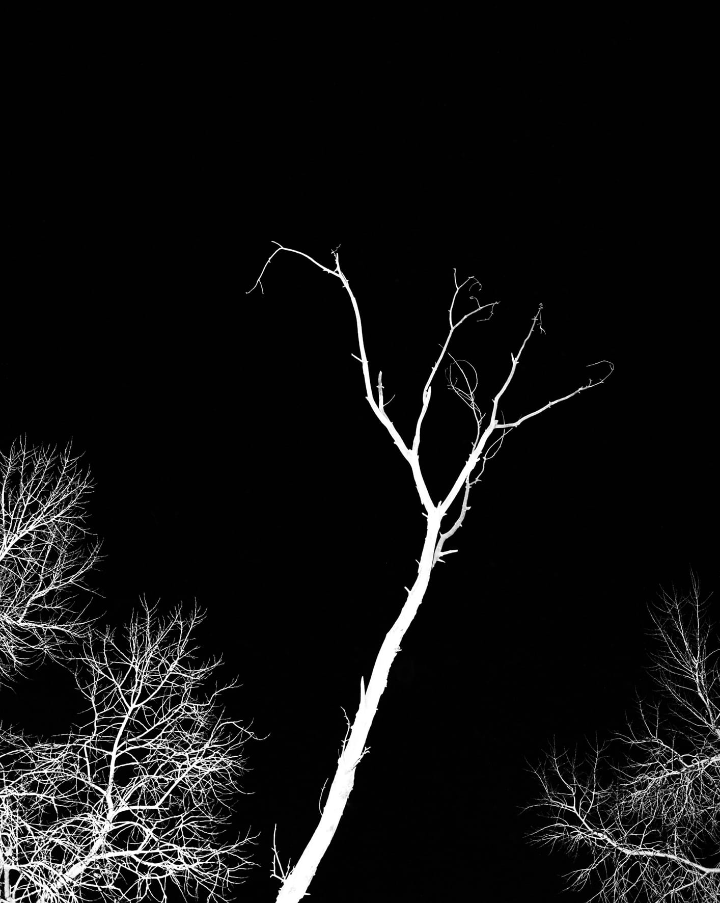 In Svart Metall, his graduate work, Willing focuses on the primary themes of the Black Metal culture such as Norse mythology, rugged nature, winter and the occult. Willing translated these themes into a series of carefully constructed images: a knife stuck into a cold, bare wall, a white tree against a pitch-black sky, a dark silhouette against a light, nondescript landscape. With this body of work, Willing has succeeded in placing the obvious association with violence in the background and returned to the subculture’s tenebrous origin.