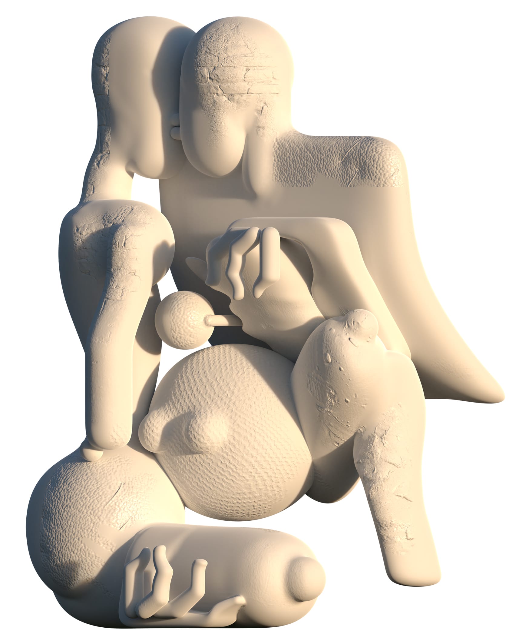 There is likely no other artist who mixes and matches more than Kévin Bray (France, 1989). Trained as a graphic designer at L’Ésaab (Nevers, France), then attached to the Design Department of the Sandberg Institute (Amsterdam, the Netherlands) and now a resident at the Rijksakademie van Beeldende Kunsten (Amsterdam, the Netherlands), he moves with ease across the boundaries of various disciplines. His work is a hybrid of techniques, motifs and formal languages in which he brings together painting, graphic design, sculpture, video, 3D-photography and sound design.