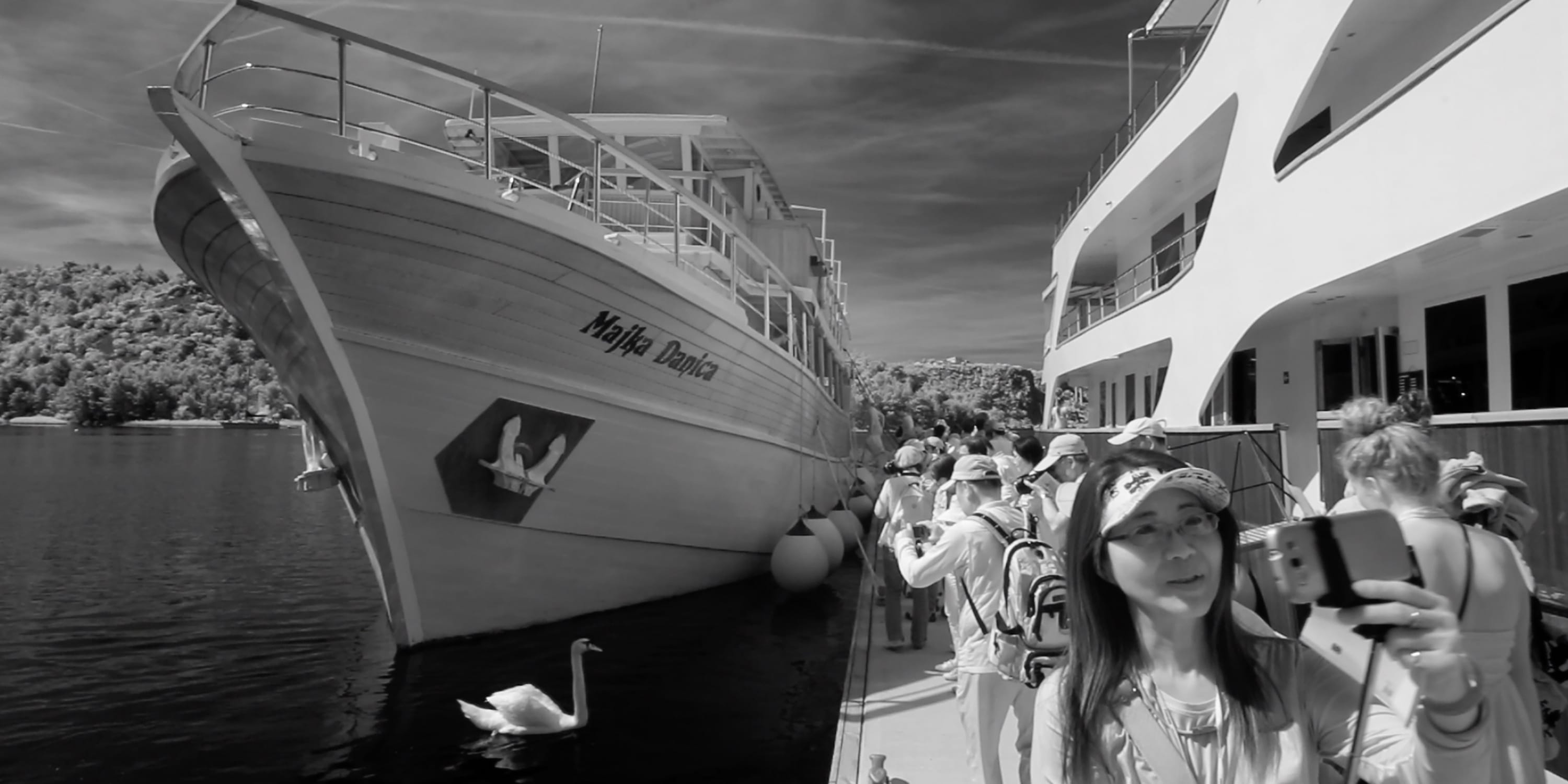 Static, without tricks or elaborate artistic interventions, the camera simply registers the discomfort and the detachment with which modern man relates to his once natural habitat. We see tourists 'consume' the landscape en masse, as if it were an amusement park. As the film progresses, it takes on a steadily more oppressive undertone. The overwhelming natural beauty gradually turns into the setting for what increasingly resembles an apocalyptic doom scenario.