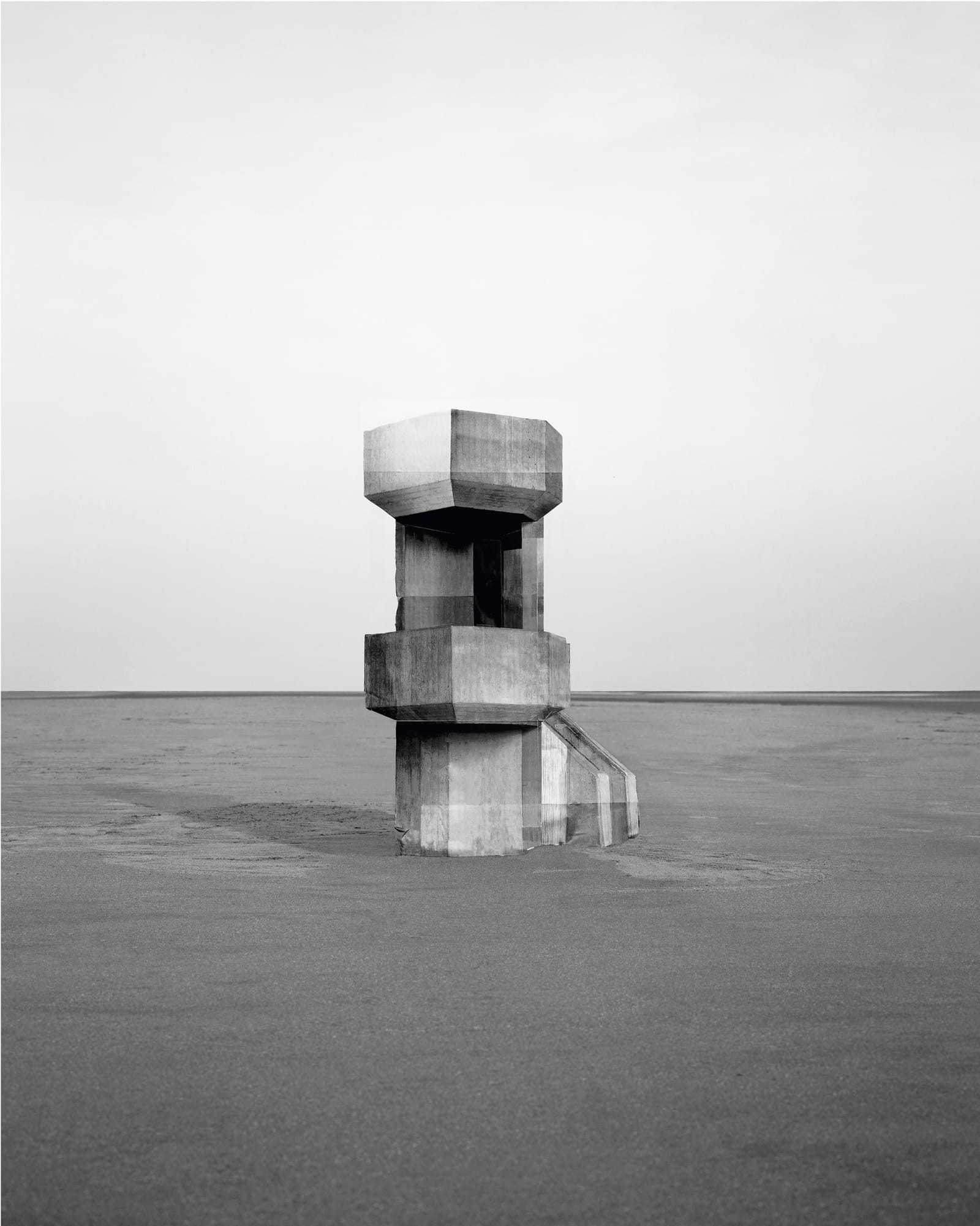 The landscape becomes a theatrical setting distinguished by an intriguing aesthetic. The photographic series are the result of spatial interventions and physical constructions which examine the two- and three-dimensional relationships in the image. The interventions are exclusively carried out at the location where the photographic work is created.