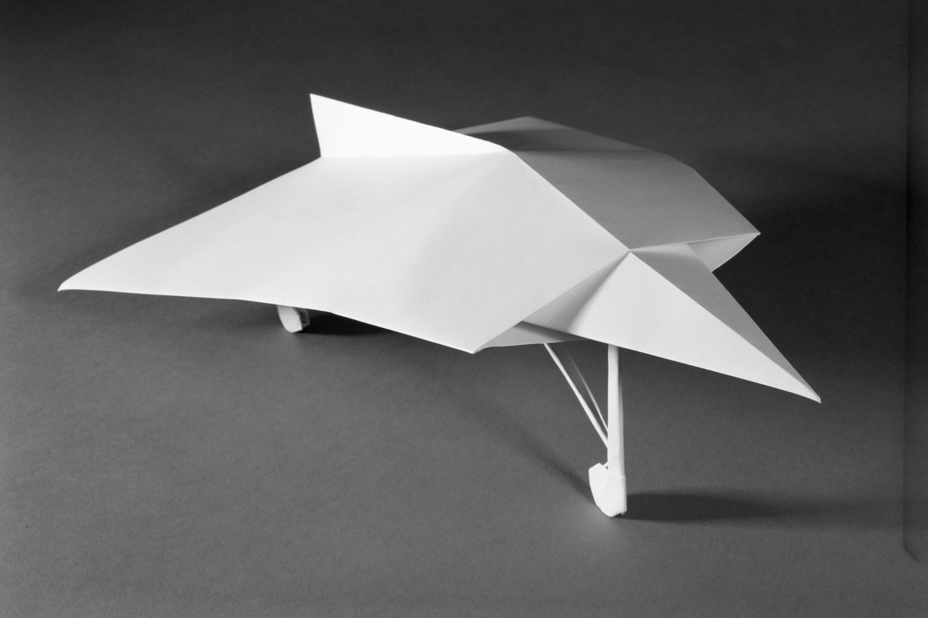 One of the projects Knibbeler presents is Paper Planes, a photo series of sixteen paper aeroplanes that he folded – based on aeroplane designs that have never been put into production or have never been in the air. He found the designs, some of which even date back eighty years, on internet. While at first they may present an image of failure or appear outdated, at the same time they represent an image of the future. Their existence is maintained through the internet, where they fly through virtual space and are shared and discussed by enthusiasts.